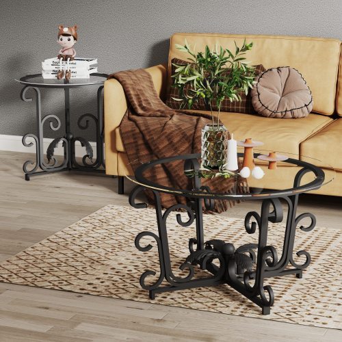 - Unique Rustic Design: Elevate your living space with the unique rustic design of this coffee table set. The combination of a rustic black finish and distinctive styling brings character to your room, making it a standout piece that complements various interior aesthetics.