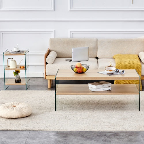 Product Name:Double layered rectangular coffee table.The board is made of MDF with wooden stickers, with transparent tempered glass on both side.Suitable for various occasions such as living rooms and bedrooms.