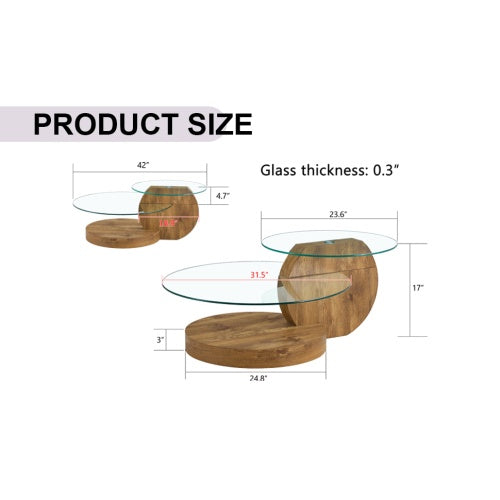 Double-layer Round Glass Coffee Table with Wood MDF Table Legs